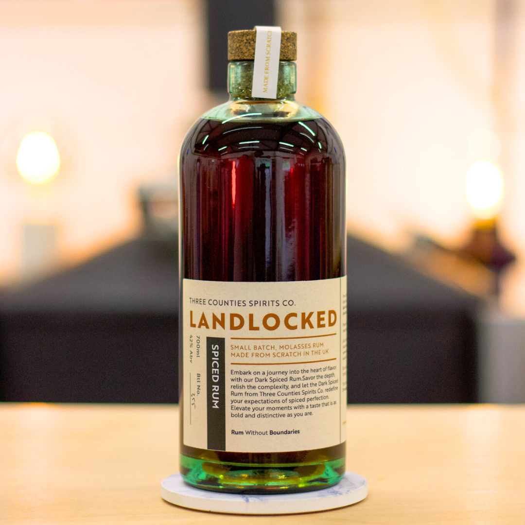 Dive into the rich, intense flavours of Landlocked English Dark Spiced Rum, a meticulously crafted spirit from our Milton Keynes distillery. Made from scratch using a molasses base, this double pot distilled rum is enhanced with a deep dunder essence created from the spent molasses of our first distillation. We blend this with our signature rum and a second spiced rum made from the spent spices of our Landlocked English Spiced Rum, adding a touch of caramel for a smooth, balanced finish. The result? A dark spiced rum that’s packed with bold, layered flavours — all from natural ingredients.